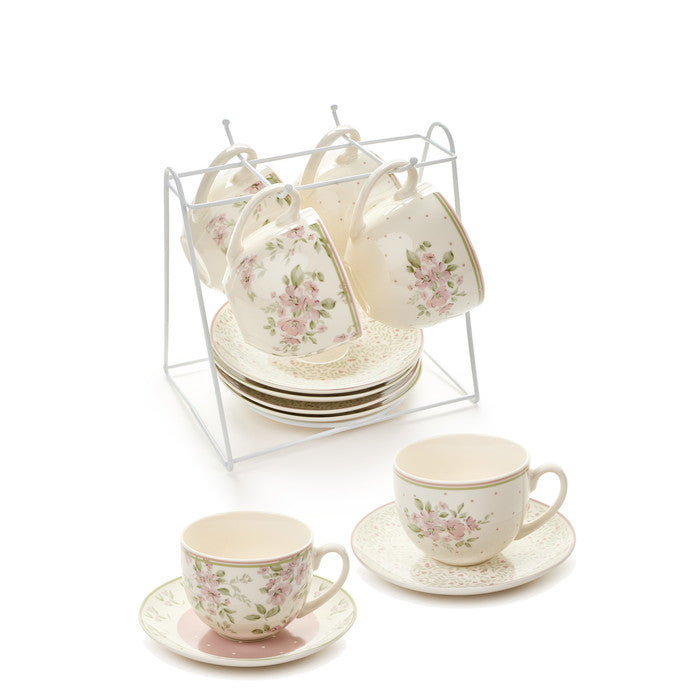 Conjunto duas chávenas com pires e expositor