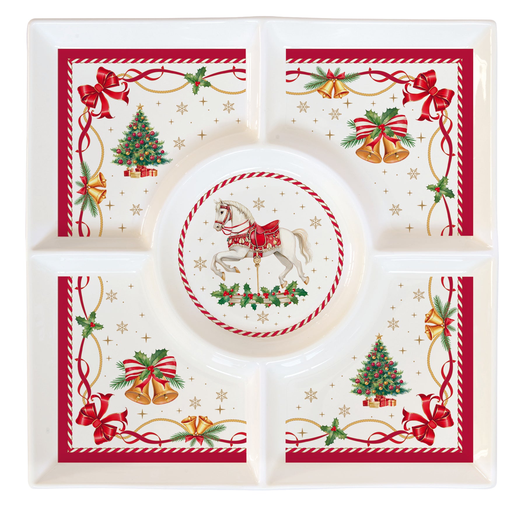 🎀 Prato Aperitivos CTAL Porcelana 25x25cm com Caixa – A elegância natalícia que transforma cada aperitivo numa celebração.